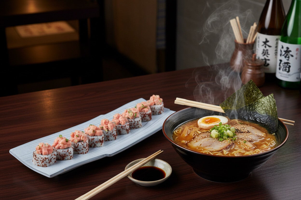 Beyond sushi, our menu extends to include special ramens, crafted with rich broths and fresh ingredients to provide a comforting yet extraordinary experience. Perfect for a hearty meal, our ramens are designed to complement our sushi offerings and complete your Japanese culinary adventure.